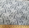 90% Nylon, 10% Spandex, approximately 58 inches wide. Stretch lace has approximately 90% stretch in the length and 40% stretch inthe width. Both edges have a straight finish. Great for clothing overlays, decorating and trims. Medium weight for lace standards. Hand wash and drip dry recommended. Colors may vary due to differences in screen settings.